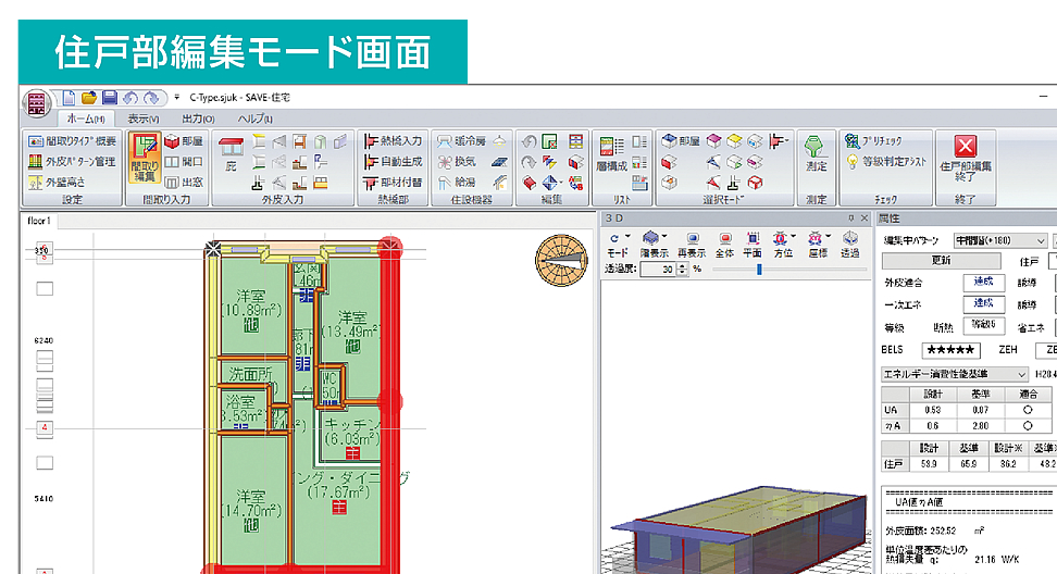 計算内容と等級判定、計算図書とCAD出力、リアルタイム計算機能や複数案の検討、冷暖房費の比較や外皮パターンの違いによる比較を機能ごとに紹介します。