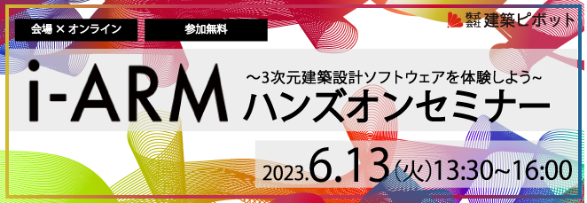 3次元建築設計ソフトウェア「i-ARM」を無料で体験していただけるハンズオンセミナーを開催いたします。